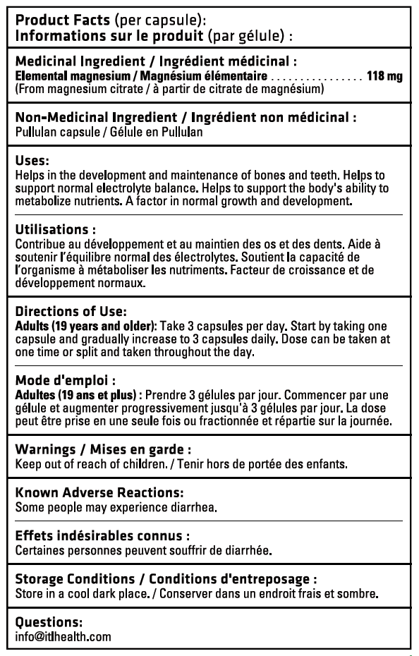 Like all ITL Health products, MAGcitr8 is produced in small batches with an uncompromising commitment to purity. Each capsule contains only magnesium citrate, with no fillers, binders, flow agents, preservatives, or manufacturing chemicals. Nothing hidden. Nothing unnecessary.
